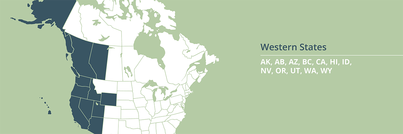 (AK, AB, AZ, BC, CA, HI, ID, NV, OR, UT, WA, WY)